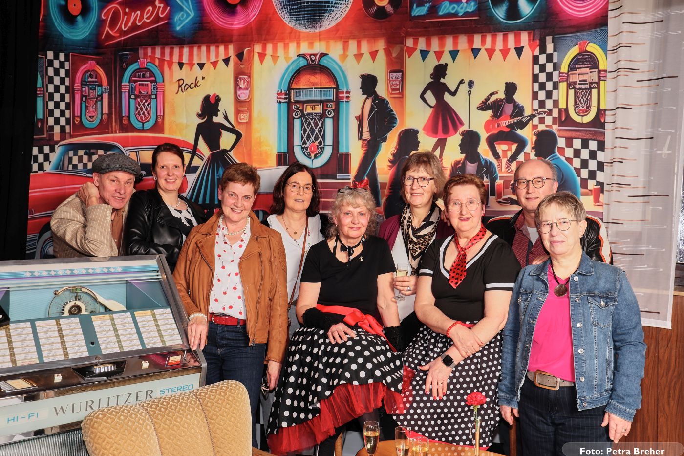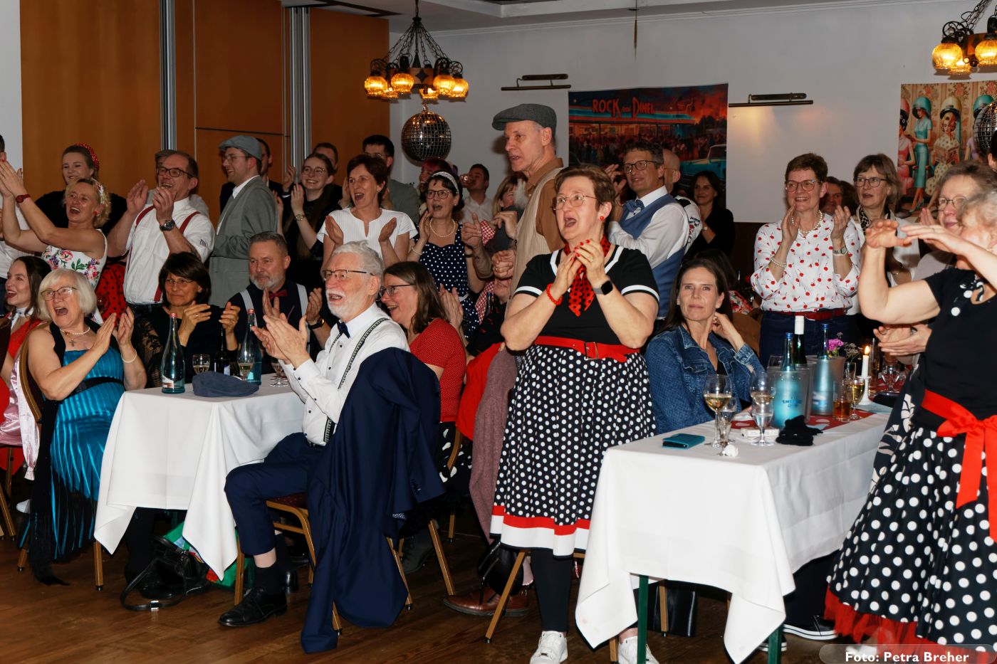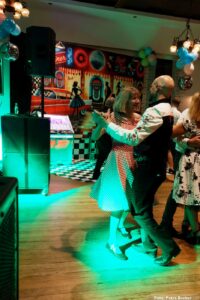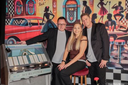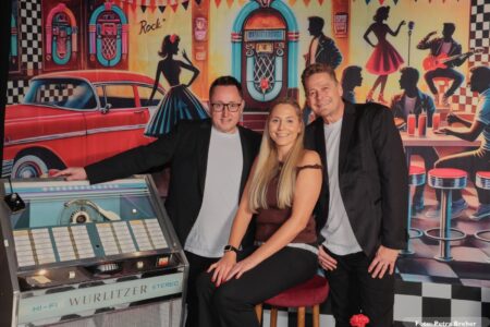 Knapp 200 Gäste folgten unserer Einladung und sorgten von Beginn an für eine großartige Atmosphäre. Petticoats, Lederjacken und schwungvolle Frisuren bestimmten das Bild und machten das Motto schon optisch lebendig. Die aufwändig gestaltete Dekoration und das passende Ambiente ließen echtes Rock’n’Roll-Feeling aufkommen.