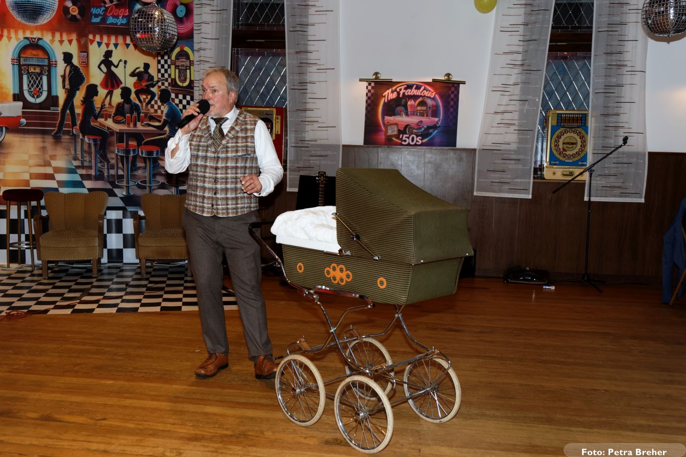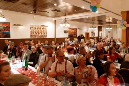 Ein besonderes Highlight des Abends war der Auftritt von Trude Herr, die auf humorvolle und zugleich beeindruckende Weise von Vereinswirt Jürgen Breher verkörpert wurde. Mit Charme, Witz und jeder Menge Bühnenpräsenz brachte er den Saal zum Lachen und Klatschen – ein Auftritt, der sicher noch lange in Erinnerung bleiben wird.